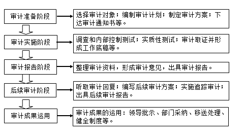 内部审计工作流程一般包括:审计准备、审计实施、审计报告、后续审计和成果运用等五个阶段和内容。