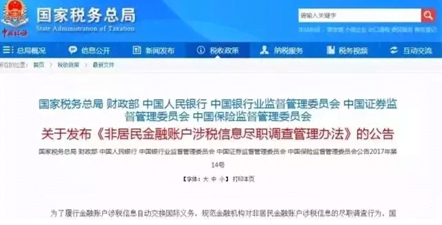 按照税务总局公布的时间表来看,在本月底就将完成账户超过600万的尽职调查,那么从2018年1月1号开始,将全面清查所有的账户,并且将在2018年9月进行第一次涉税信息交换。